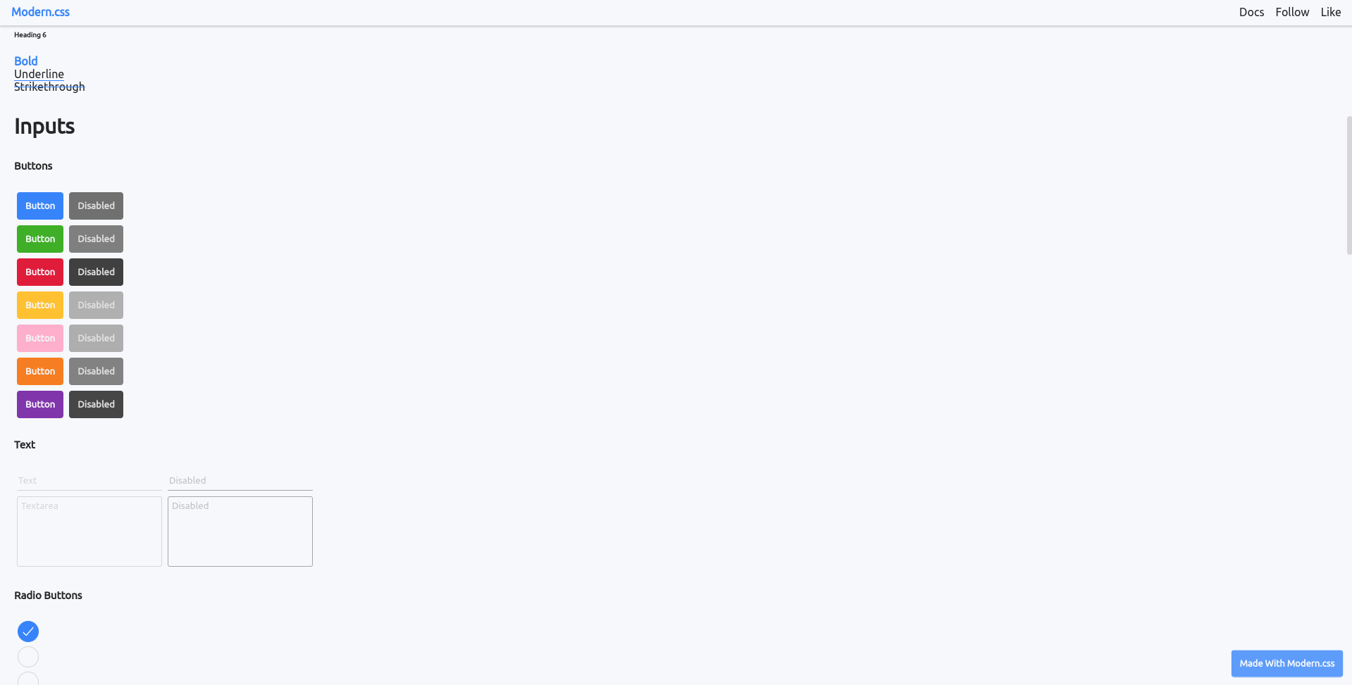 Modern.css Is A css Library That Is Simple And Minimalistic. Mordern.css has checkboxes, switches, buttons and more that have been designed to be modern.
